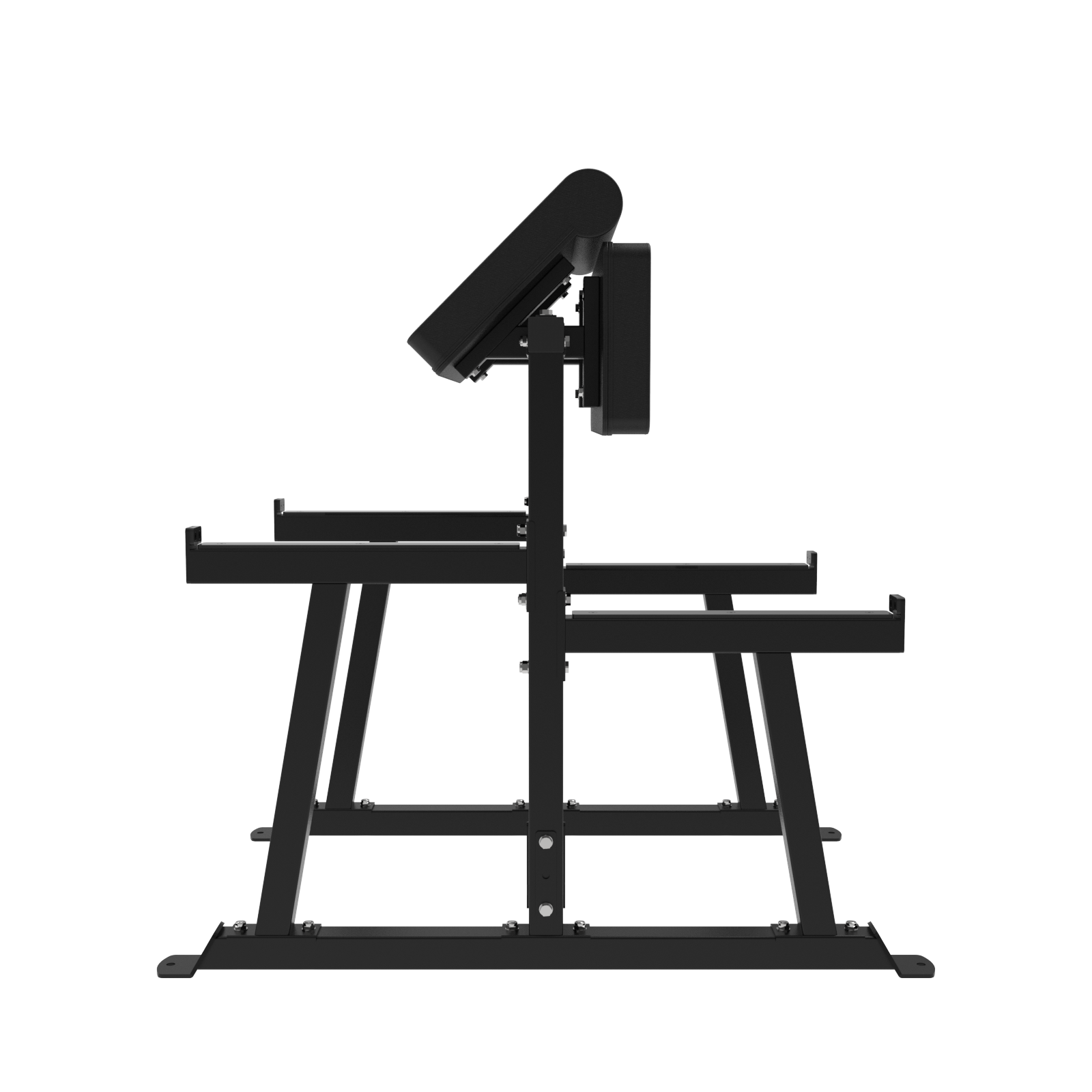 Die Scott Bank ist durch ihre stabile Vierkant Stahlrahmen-Konstruktion hoch belastbar und steht aufgrund des hohen Eigengewichtssehr stabil. Dank der mit hartem Kunststoff bezogenen Hantelstangen-Ablagen sowie der Querstrebe, die für zusätzlichen Halt beim Curlen sorgt, werden Abnutzungen an den Langhanteln vermieden und Kratzer verhindert.