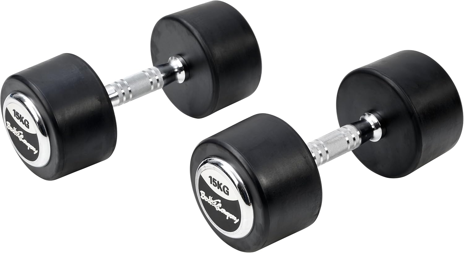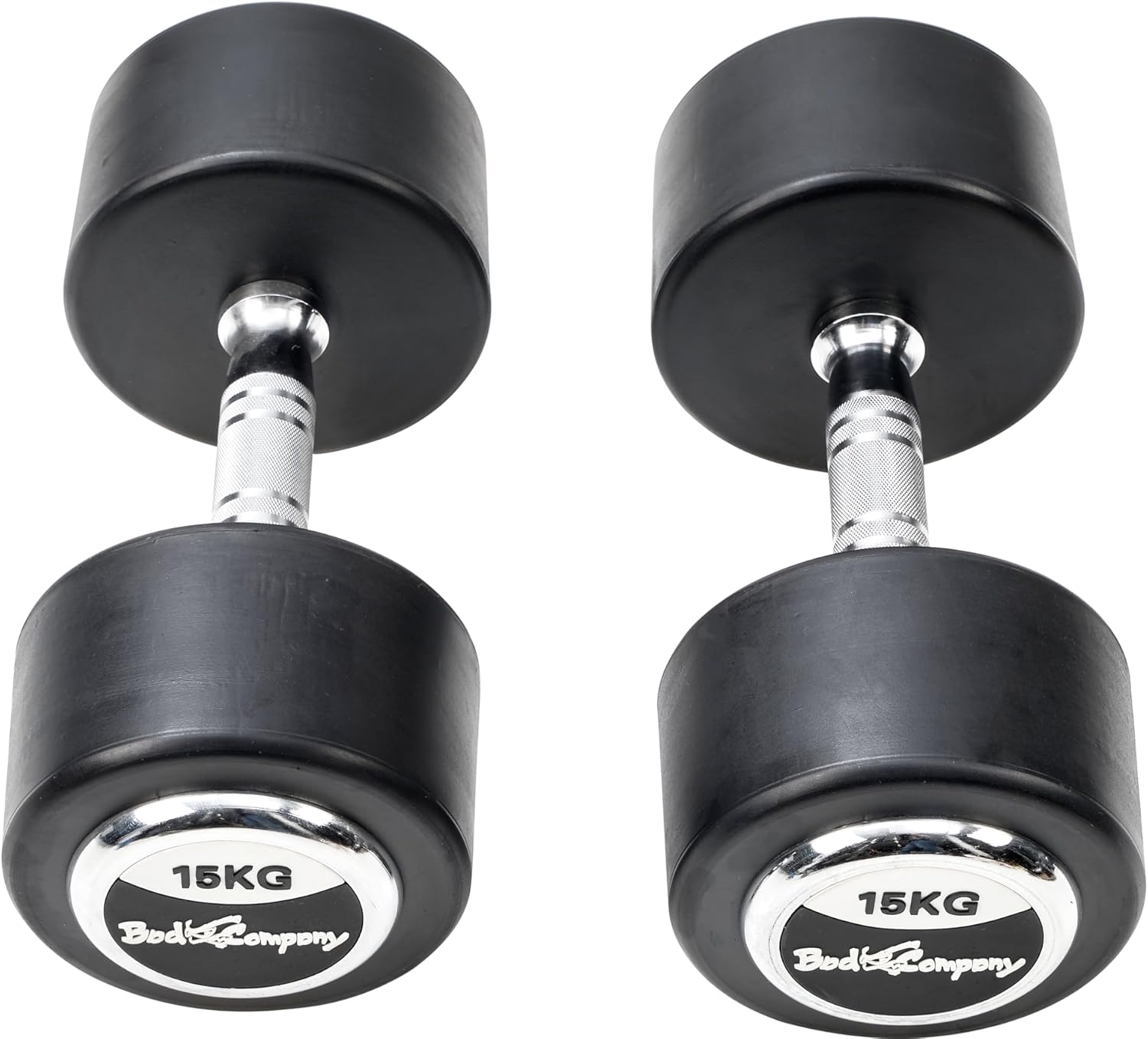 Deluxe 30 Kg (2x15,0) gummierte Bad Company Studio Rundhanteln inkl. Chrom Applikationen