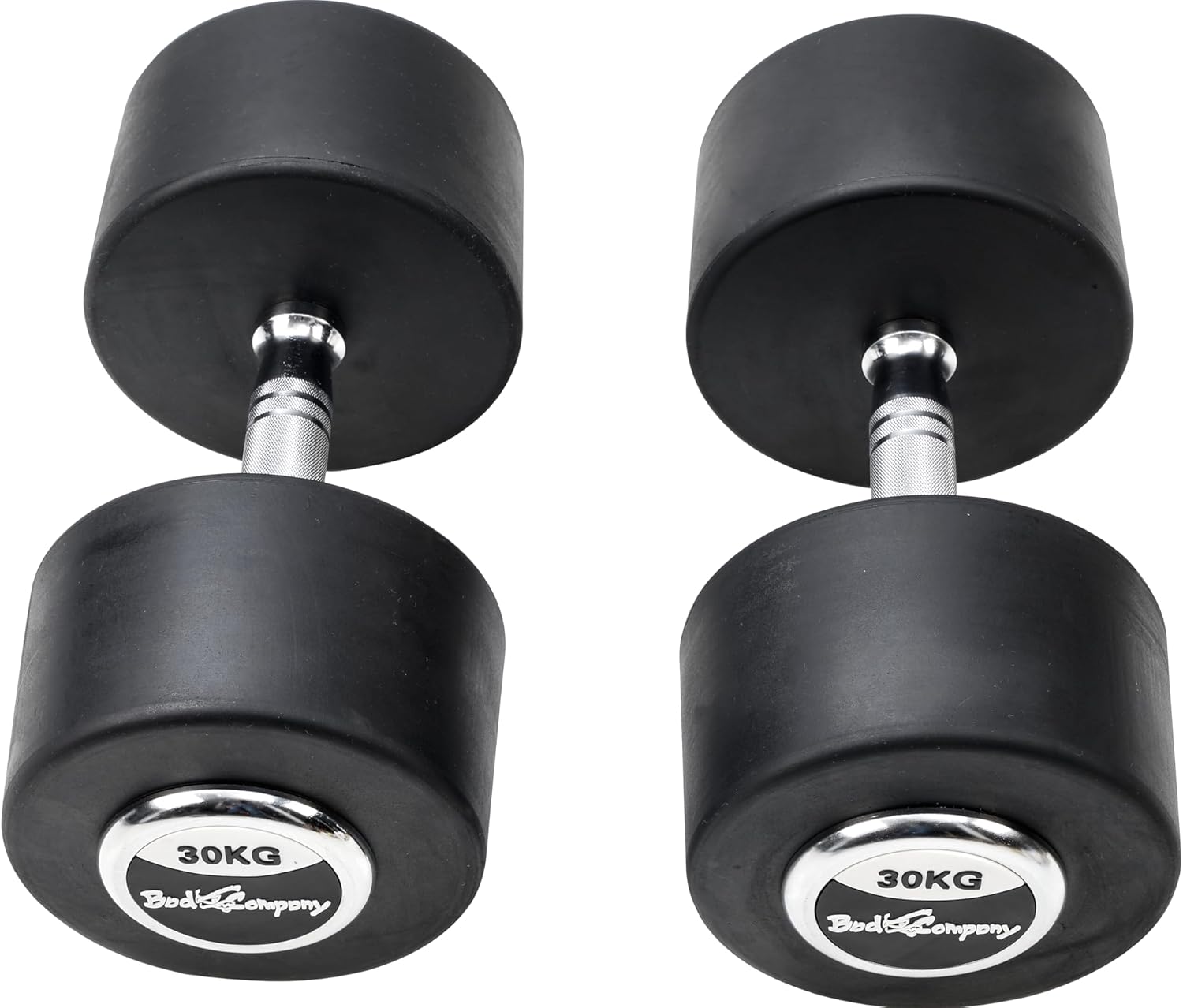 Deluxe 60 Kg (2x30,0) gummierte Bad Company Studio Rundhanteln inkl. Chrom Applikationen