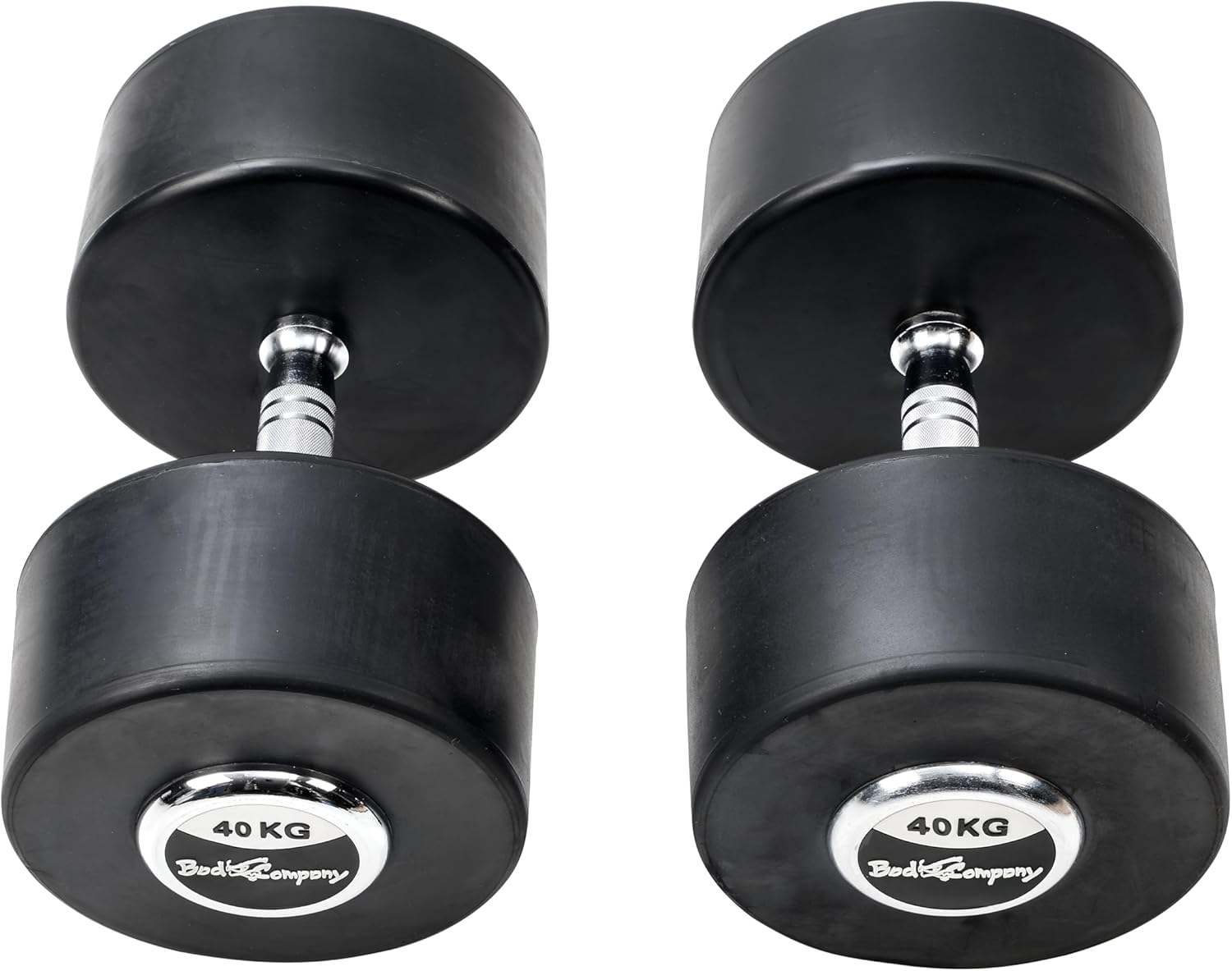 Deluxe 80 Kg (2x40,0) gummierte Bad Company Studio Rundhanteln inkl. Chrom Applikationen