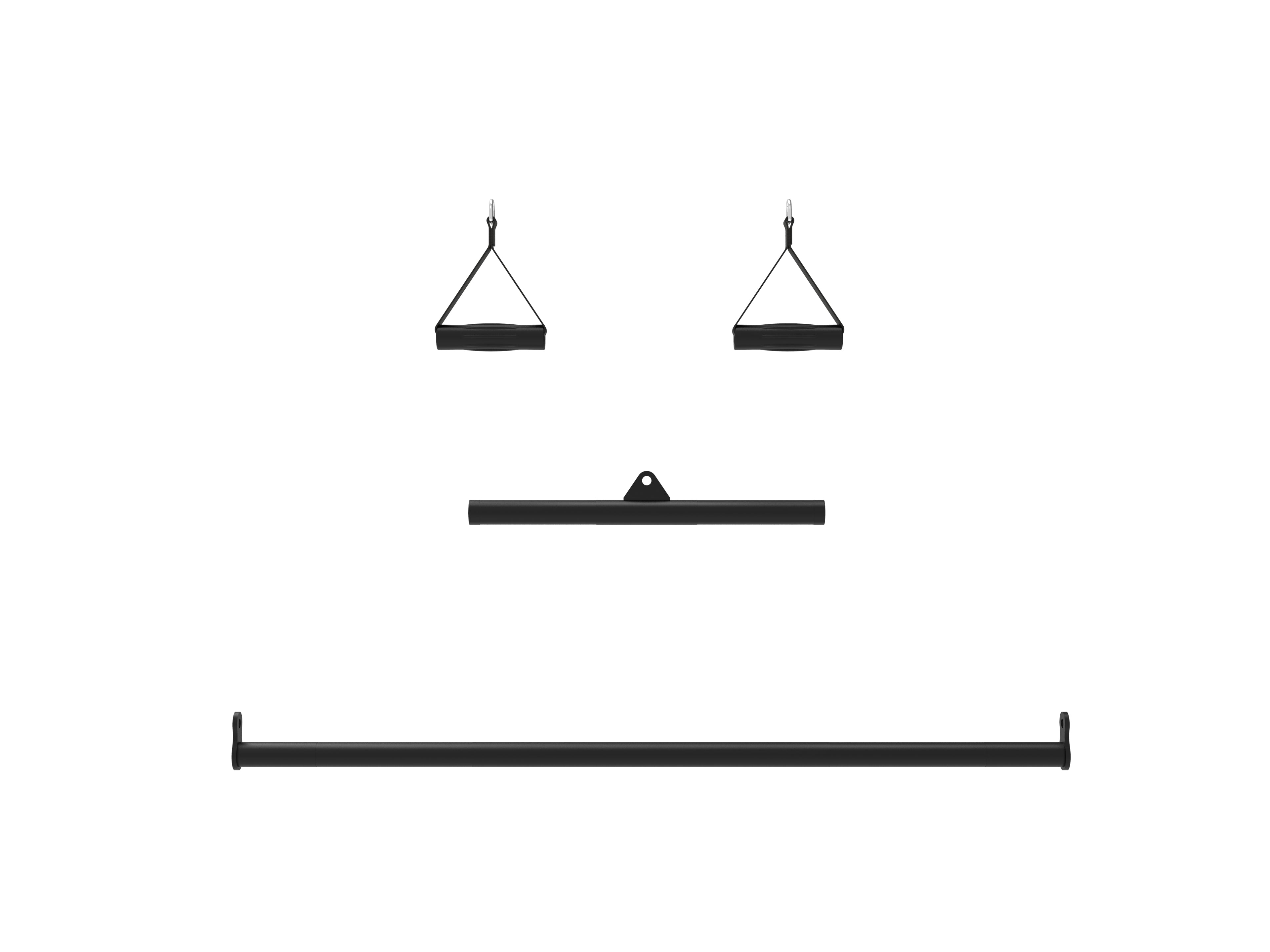 Die Führungsschienen lassen sich von 35 cm bis 170 cm in der Höhe verstellen und ermöglichen dir ein Training im Stehen, Sitzen oder sogar Liegen. Kombiniert mit der integrierten Klimmzugstange und den mitgelieferten Griffen wie Bizeps-/Trizeps-Stange, Cross-Bar und Einhandgriffen wird dein Workout besonders abwechslungsreich.
